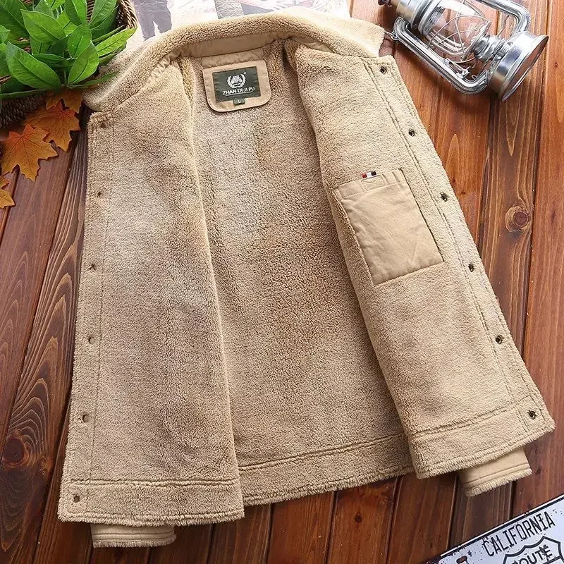 2023 Winter New Men's Cotton Coat Solid Unhooded Casual Mid Length Cotton Coat